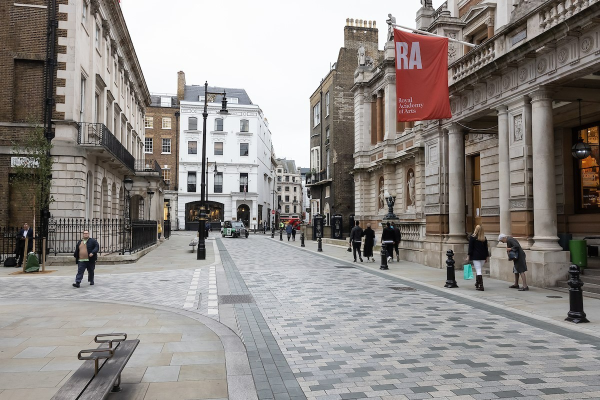 These works support the area during a time of considerable change, with the coming of the Elizabeth line, the opening of the new Royal Academy building and entrance on Burlington Gardens, and the regeneration of the galleries and associated uses on Cork Street.
